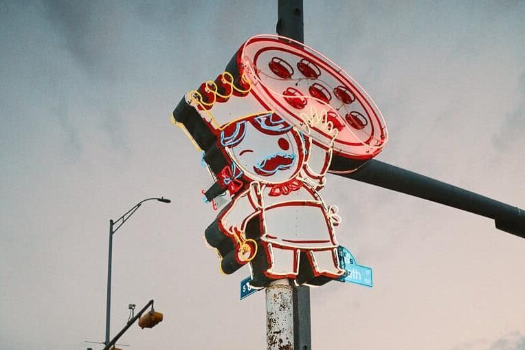 - Grabbing pizza and champagne at Home Slice Pizza after a courthouse elopement